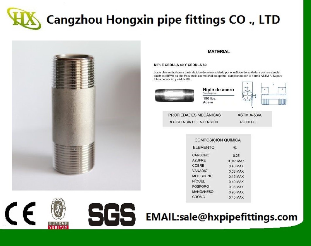 Our main products include steel pipe nipples, sockets (black or galvanized, seamless or